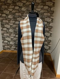 A true "Farm-to-Fashion" product. 99% alpaca, 1% wool Infinity Cowl. Raised & woven right here on the farm. Long enough to wrap around the neck 2 or even 3 times. Or wrap once or twice and use the last wrap to go over the head like a hood for when the snow flies. Sure to keep the wind and cold out. Woven in natural white & fawn with forest green accent. Neutral enough to go with anything.