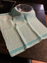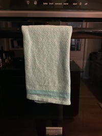 Handwoven (Single) Kitchen towel 50% cotton/50% Linen. Turquoise/Natural white